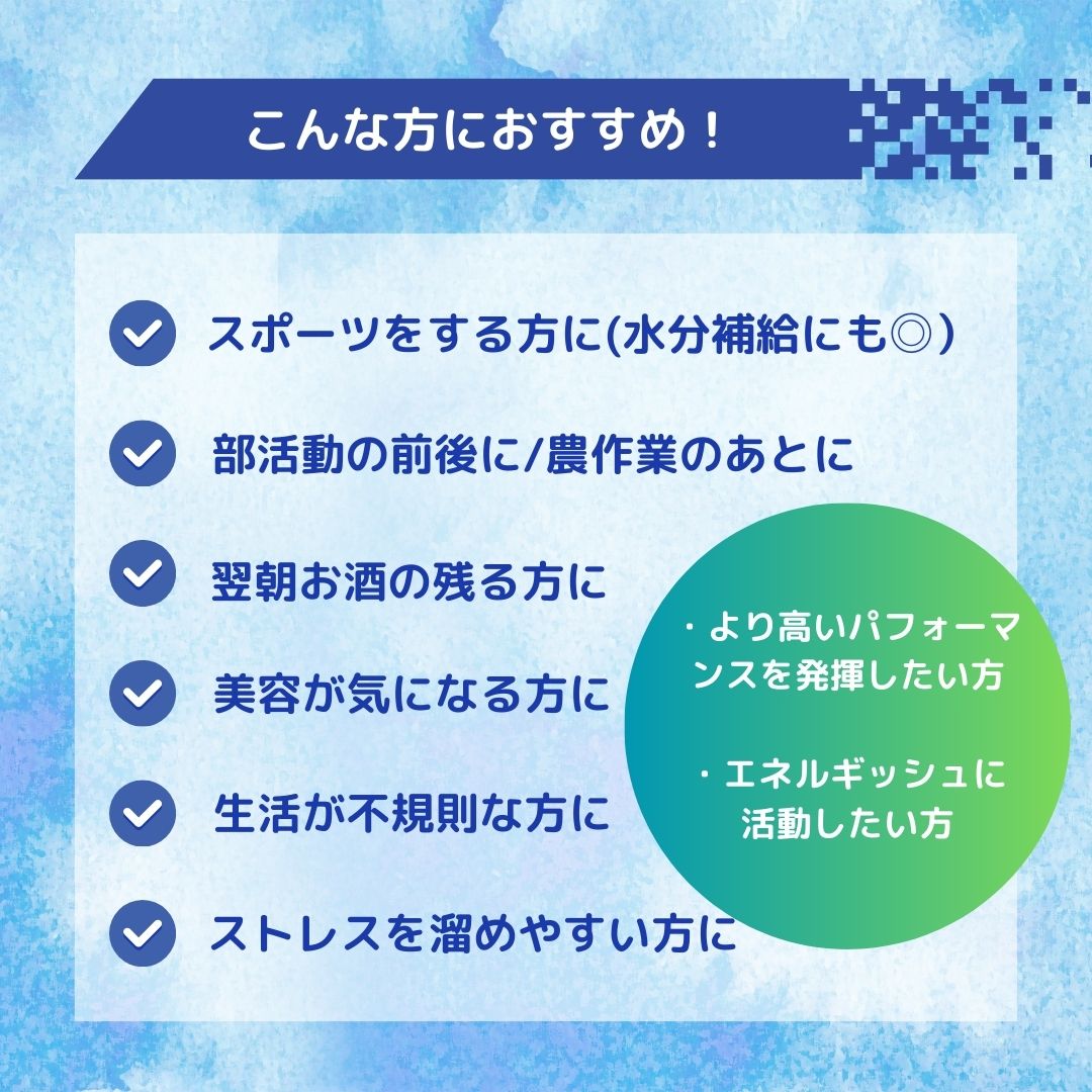 より高いパフォーマンスを発揮したい方、エネルギッシュに活動したい方におすすめです!